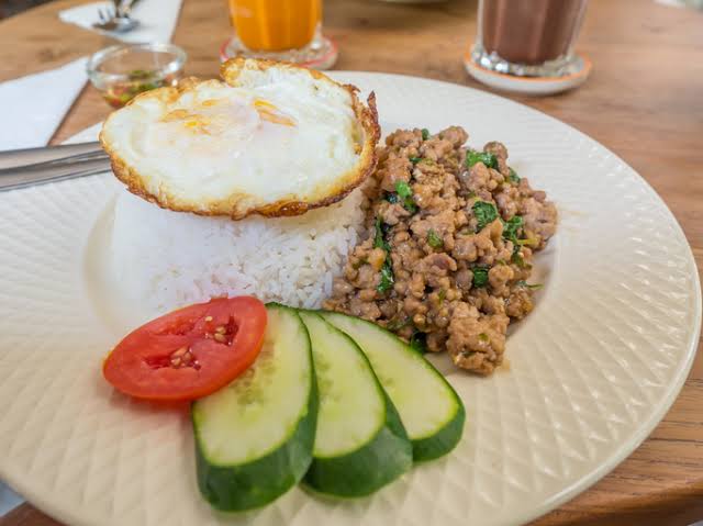 Fried Basil has Many Ingredients such as busil, groundod port, oyster, sauce, sugar, pounded redpepper, garlic. It’s make fried basil delicious and mellaw. In additiow, fried basil has a lot of benefits to help verythings is tody and make body strong.